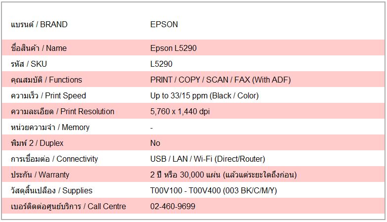 พิมพ์ - สำเนา - สแกน - แฟกซ์ รับประกัน 2 ปี หรือ 30,000 แผ่น (แล้วแต่ระยะใดถึงก่อน)