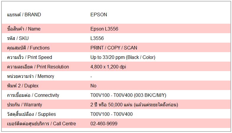 พิมพ์ - สำเนา - สแกน รับประกัน 2 ปี หรือ 50,000 แผ่น (แล้วแต่ระยะใดถึงก่อน)
