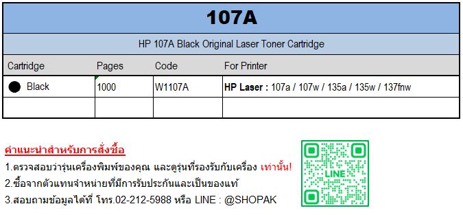 HP 107A Black Original Laser Toner Cartridge (W1107A)