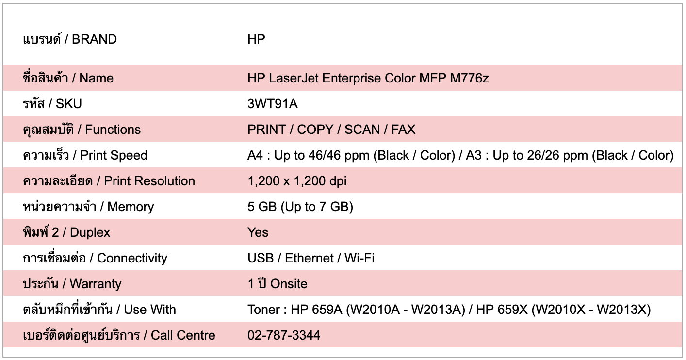 รับประกัน 1 ปี พร้อมบริการซ่อมนอกสถานที่จาก HP — HP LaserJet Enterprise Color MFP M776z เป็นเครื่องพิมพ์เลเซอร์สีมัลติฟังก์ชันระดับองค์กร รองรับการ พิมพ์ สำเนา สแกน และแฟกซ์ ให้คุณภาพสีคมชัด รองรับงานเอกสารปริมาณมากและงานขนาดใหญ่ เหมาะสำหรับสำนักงานขนาดกลางถึงขนาดใหญ่ มาพร้อมระบบความปลอดภัย การจัดการงานพิมพ์ และการเชื่อมต่อเครือข่ายที่มีประสิทธิภาพ
