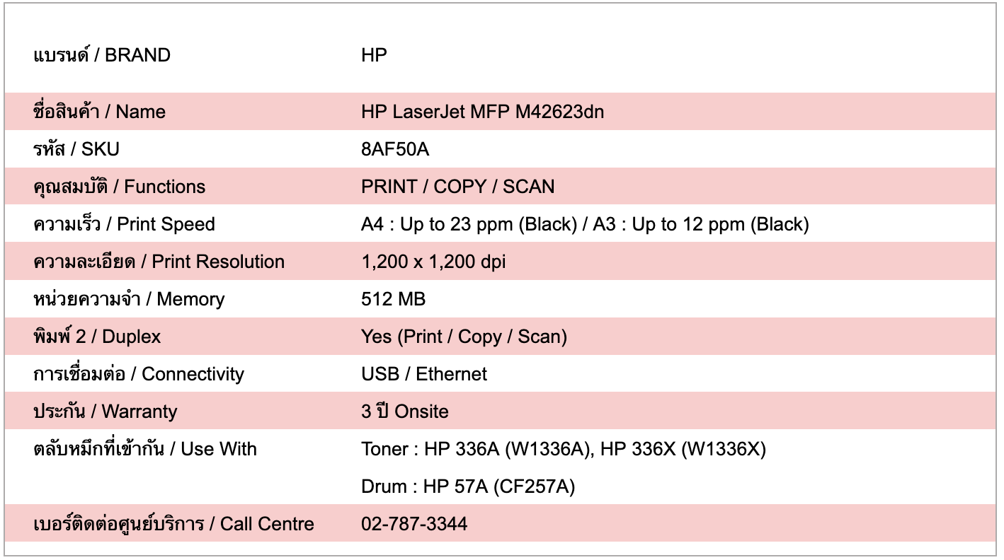 รับประกัน 3 ปี พร้อมบริการซ่อมนอกสถานที่จาก HP — HP LaserJet MFP M42623dn เป็นเครื่องพิมพ์เลเซอร์ขาวดำมัลติฟังก์ชัน รองรับการ พิมพ์ สำเนา และสแกน ให้คุณภาพงานเอกสารคมชัด ความเร็วและความเสถียรสูง เหมาะสำหรับสำนักงานที่มีปริมาณงานเอกสารต่อเนื่อง มาพร้อมการเชื่อมต่อเครือข่ายและระบบจัดการงานพิมพ์ที่ช่วยเพิ่มประสิทธิภาพการทำงาน