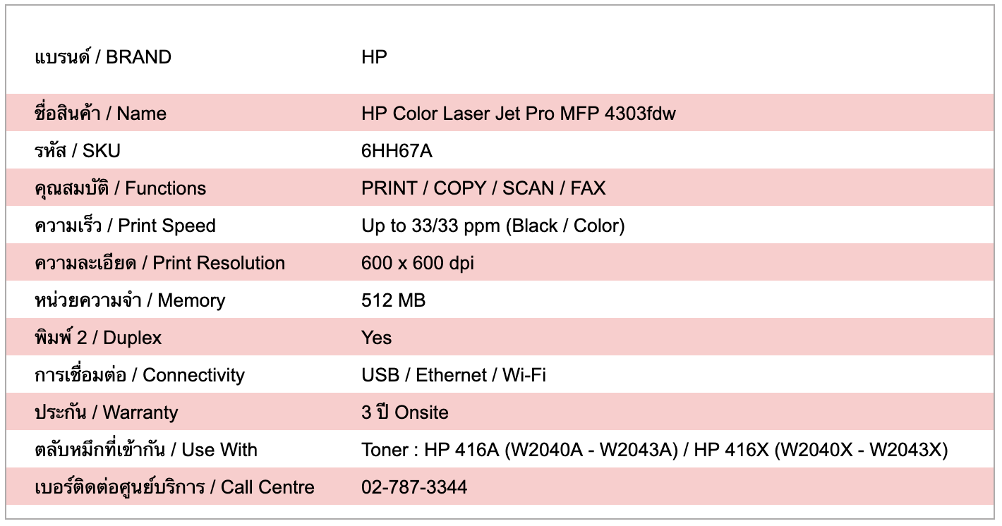 รับประกัน 3 ปี พร้อมบริการซ่อมนอกสถานที่จาก HP — HP Color LaserJet Pro MFP 4303fdw เป็นเครื่องพิมพ์เลเซอร์สีมัลติฟังก์ชัน รองรับการ พิมพ์ สำเนา สแกน และแฟกซ์ เหมาะสำหรับสำนักงานที่ต้องการเครื่องเดียวจบ ให้คุณภาพสีคมชัด ความเร็วสูง พร้อมการเชื่อมต่อเครือข่ายและไร้สาย ช่วยเพิ่มประสิทธิภาพและความคล่องตัวในการทำงานประจำวัน