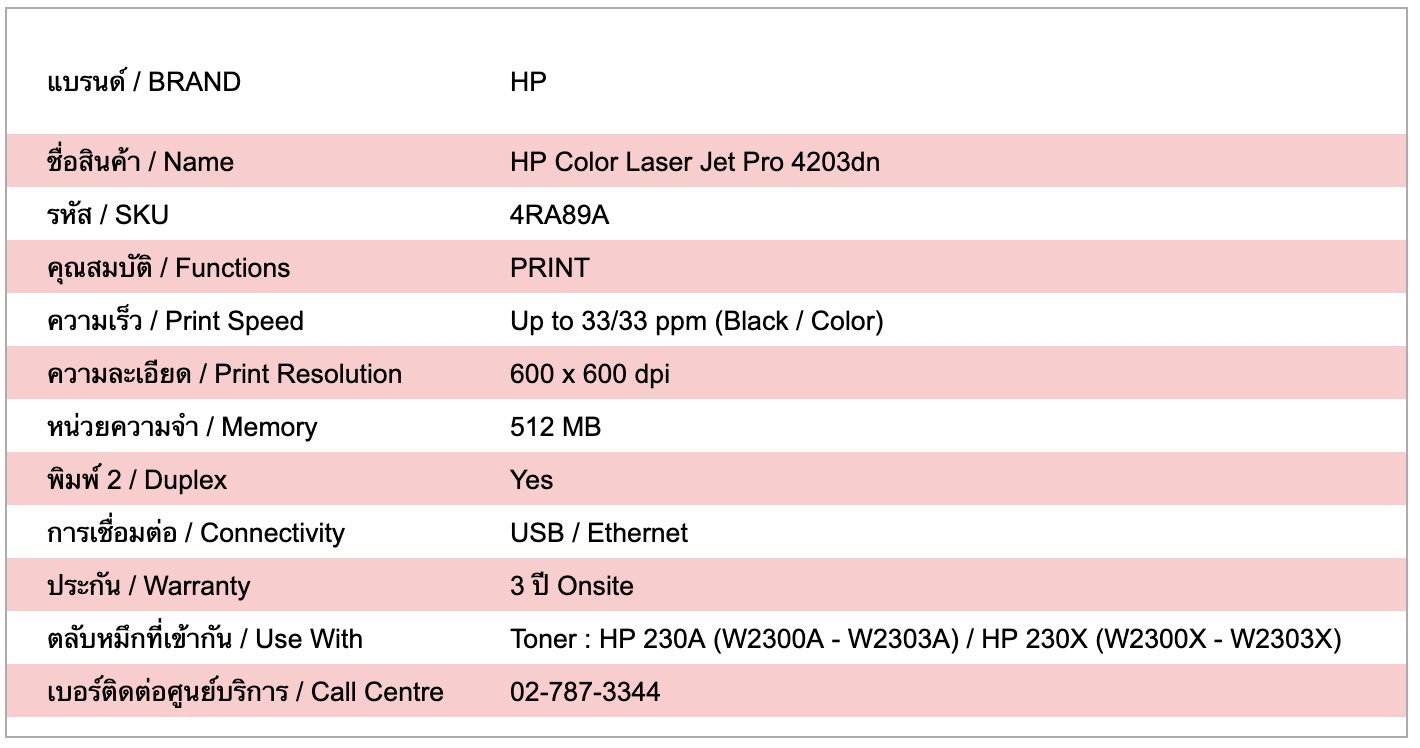 รับประกัน 3 ปี พร้อมบริการซ่อมนอกสถานที่จาก HP — HP Color LaserJet Pro 4203dn เป็นเครื่องพิมพ์เลเซอร์สี พิมพ์อย่างเดียว ให้คุณภาพงานพิมพ์สีคมชัด ความเร็วสูง เหมาะสำหรับสำนักงานขนาดกลางที่ต้องการความเสถียรและประสิทธิภาพ รองรับการเชื่อมต่อเครือข่ายผ่านสาย LAN และการพิมพ์สองหน้าอัตโนมัติ ช่วยเพิ่มความคล่องตัวในการทำงานสำนักงาน
