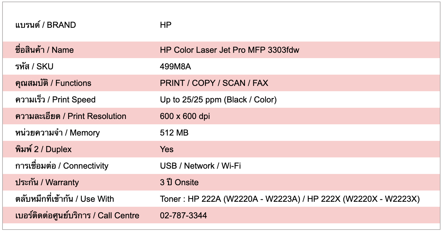 รับประกัน 3 ปี พร้อมบริการซ่อมนอกสถานที่จาก HP — HP Color LaserJet Pro MFP 3303fdw เป็นเครื่องพิมพ์เลเซอร์สีมัลติฟังก์ชัน รองรับ พิมพ์ / สำเนา / สแกน / แฟกซ์ ให้คุณภาพงานพิมพ์สีคมชัด ความเร็วสูง เหมาะสำหรับสำนักงานขนาดกลาง เชื่อมต่อได้ทั้งเครือข่ายและไร้สาย รองรับการพิมพ์สองหน้าอัตโนมัติ เพิ่มประสิทธิภาพการทำงานในทุกวัน