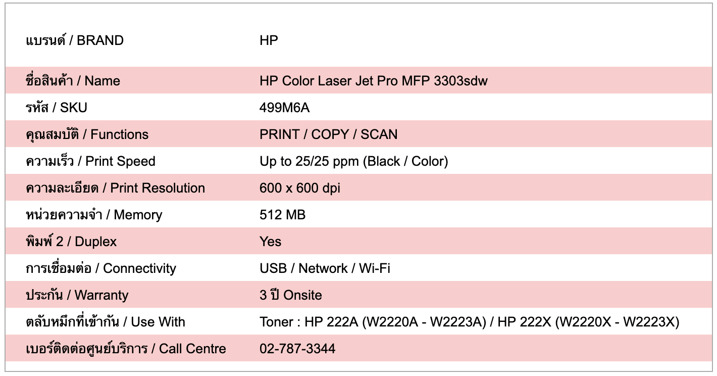 รับประกัน 3 ปี พร้อมบริการซ่อมนอกสถานที่จาก HP — HP Color LaserJet Pro MFP 3303sdw เป็นเครื่องพิมพ์เลเซอร์สีมัลติฟังก์ชัน รองรับ พิมพ์ / สำเนา / สแกน ให้คุณภาพงานพิมพ์สีคมชัด ความเร็วสูง เหมาะสำหรับสำนักงานขนาดกลาง รองรับการเชื่อมต่อทั้งเครือข่ายและไร้สาย พร้อมการพิมพ์สองหน้าอัตโนมัติ ช่วยเพิ่มความคล่องตัวและประสิทธิภาพในการทำงานประจำวัน