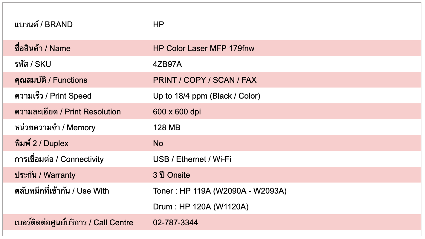 รับประกัน 3 ปี พร้อมบริการซ่อมนอกสถานที่จาก HP — HP Color Laser MFP 179fnw เป็นเครื่องพิมพ์เลเซอร์สีมัลติฟังก์ชัน รองรับ พิมพ์ / สำเนา / สแกน / แฟกซ์ ขนาดกะทัดรัด ให้คุณภาพงานพิมพ์สีคมชัด เหมาะสำหรับสำนักงานขนาดเล็กหรือโฮมออฟฟิศ รองรับการเชื่อมต่อทั้งเครือข่ายและไร้สาย Wi-Fi ใช้งานง่าย ประหยัดพื้นที่ และตอบโจทย์งานเอกสารในชีวิตประจำวัน