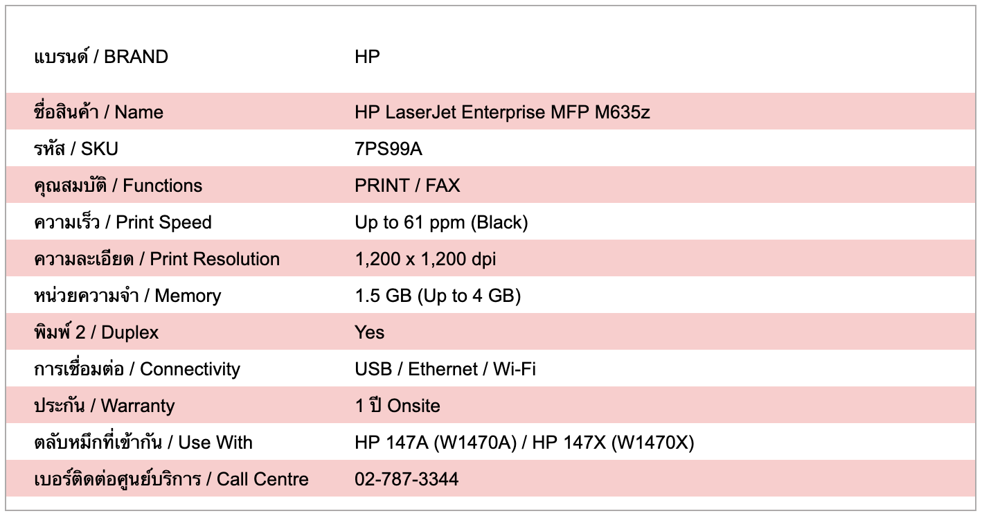 รับประกัน 1 ปี พร้อมบริการซ่อมนอกสถานที่จาก HP — HP LaserJet Enterprise MFP M635fht เป็นเครื่องพิมพ์เลเซอร์ขาวดำระดับองค์กรแบบมัลติฟังก์ชัน รองรับ พิมพ์ / สำเนา / สแกน / แฟกซ์ เหมาะสำหรับสำนักงานขนาดกลางถึงใหญ่ รองรับงานพิมพ์ปริมาณมาก ให้ความเร็วและความเสถียรสูง พร้อมระบบจัดการเอกสารและความปลอดภัยระดับองค์กร ช่วยเพิ่มประสิทธิภาพการทำงานอย่างต่อเนื่อง