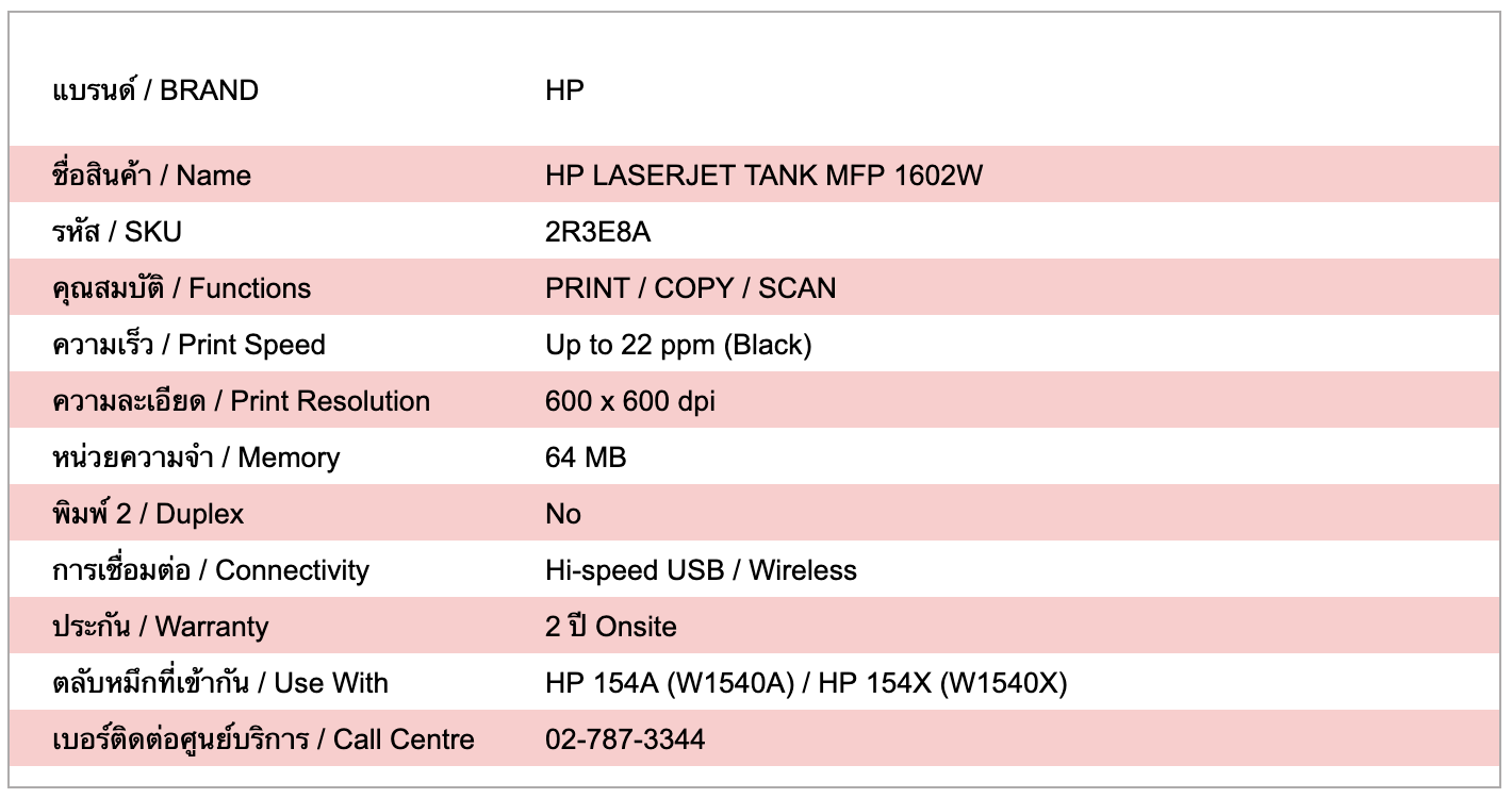 รับประกัน 2 ปี พร้อมบริการซ่อมนอกสถานที่ HP LaserJet Tank MFP 1602w เป็นเครื่องพิมพ์เลเซอร์ขาวดำแบบมัลติฟังก์ชัน พิมพ์-สำเนา-สแกน เหมาะสำหรับบ้านและสำนักงานที่ต้องการต้นทุนการพิมพ์ต่ำ ระบบแทงก์หมึก เติมง่าย ใช้งานคุ้มค่า รองรับการเชื่อมต่อผ่าน Wi-Fi ให้คุณภาพงานพิมพ์คมชัด เสถียร ใช้ชุดเติมหมึก HP 154A Black Original LaserJet Tank Toner Reload Kit ช่วยลดต้นทุนต่อแผ่น เหมาะกับการพิมพ์ปริมาณมาก