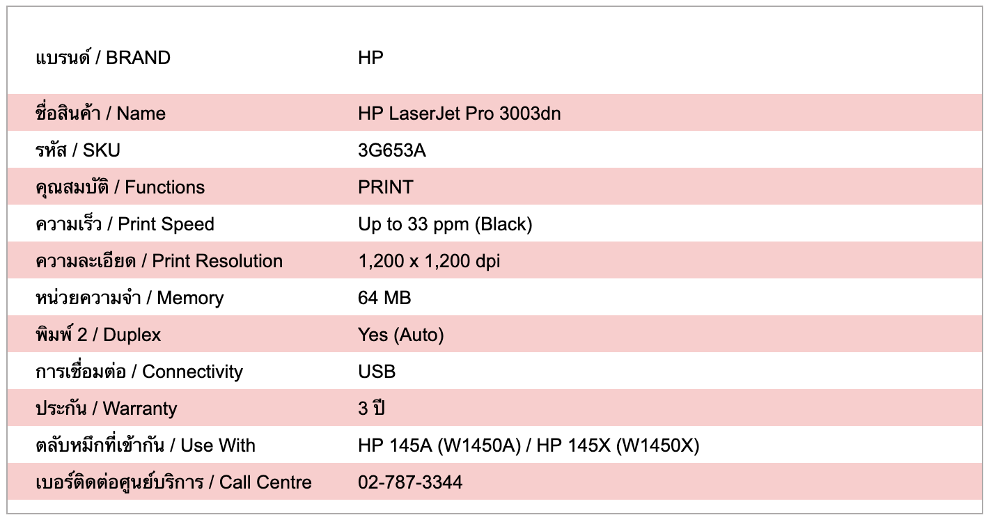 รับประกัน 3 ปี พร้อมบริการซ่อมนอกสถานที่ HP LaserJet Pro 3003dn เป็นเครื่องพิมพ์เลเซอร์ขาวดำ พิมพ์อย่างเดียว เหมาะสำหรับสำนักงานและธุรกิจขนาดเล็ก รองรับการพิมพ์สองหน้าอัตโนมัติ (Auto Duplex) เชื่อมต่อผ่านเครือข่าย LAN ให้คุณภาพงานพิมพ์คมชัด เสถียร ใช้ตลับหมึก HP 138A และ HP 138X (High Yield) ช่วยลดต้นทุนต่อแผ่น เหมาะกับงานพิมพ์ปริมาณมาก