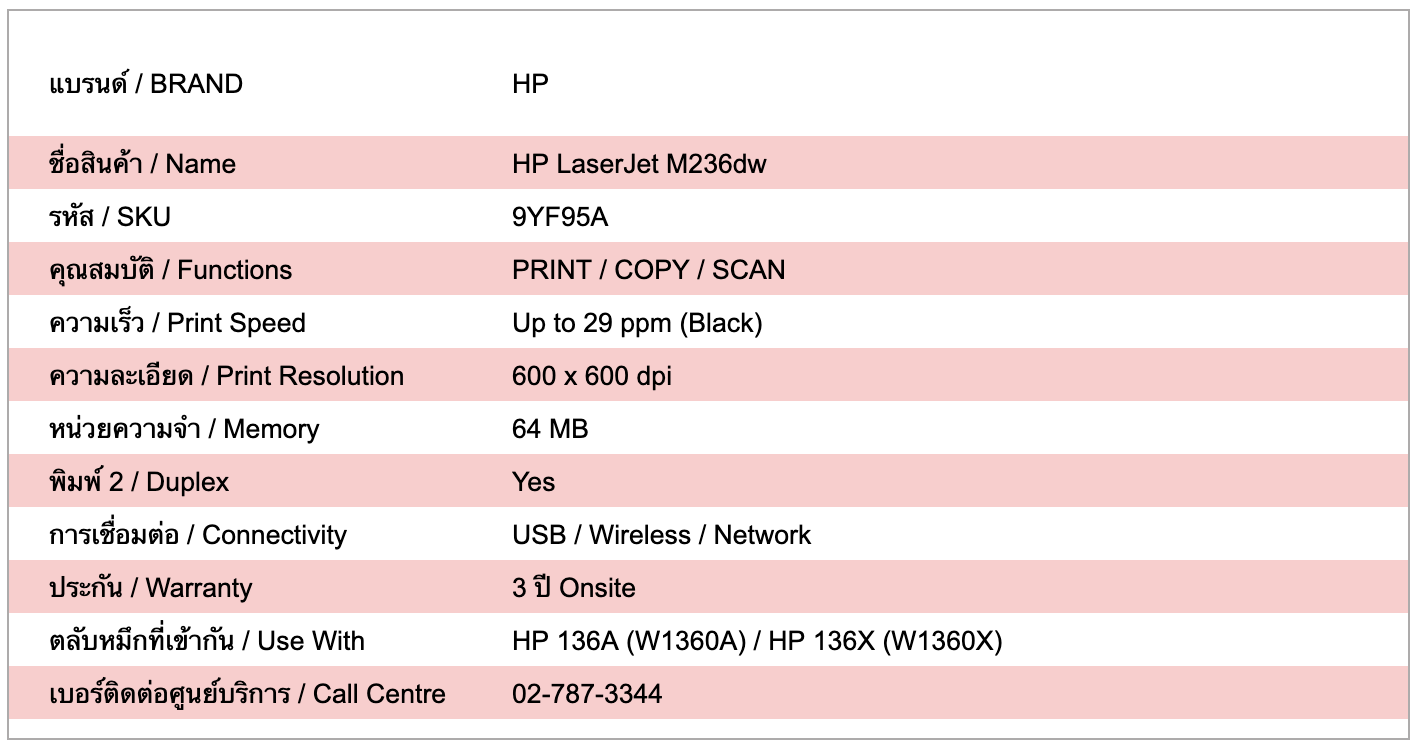 รับประกัน 3 ปี พร้อมบริการซ่อมนอกสถานที่ HP LaserJet MFP M236dw เป็นเครื่องพิมพ์เลเซอร์ขาวดำแบบมัลติฟังก์ชัน พิมพ์-สำเนา-สแกน เหมาะสำหรับบ้านและสำนักงานขนาดเล็ก รองรับการพิมพ์สองหน้าอัตโนมัติ (Auto Duplex) เชื่อมต่อผ่าน Wi-Fi และ LAN ใช้งานสะดวก ให้คุณภาพงานพิมพ์คมชัด เสถียร ใช้ตลับหมึก HP 134A และ HP 134X (High Yield) ช่วยลดต้นทุนต่อแผ่น เหมาะกับงานพิมพ์ประจำวัน